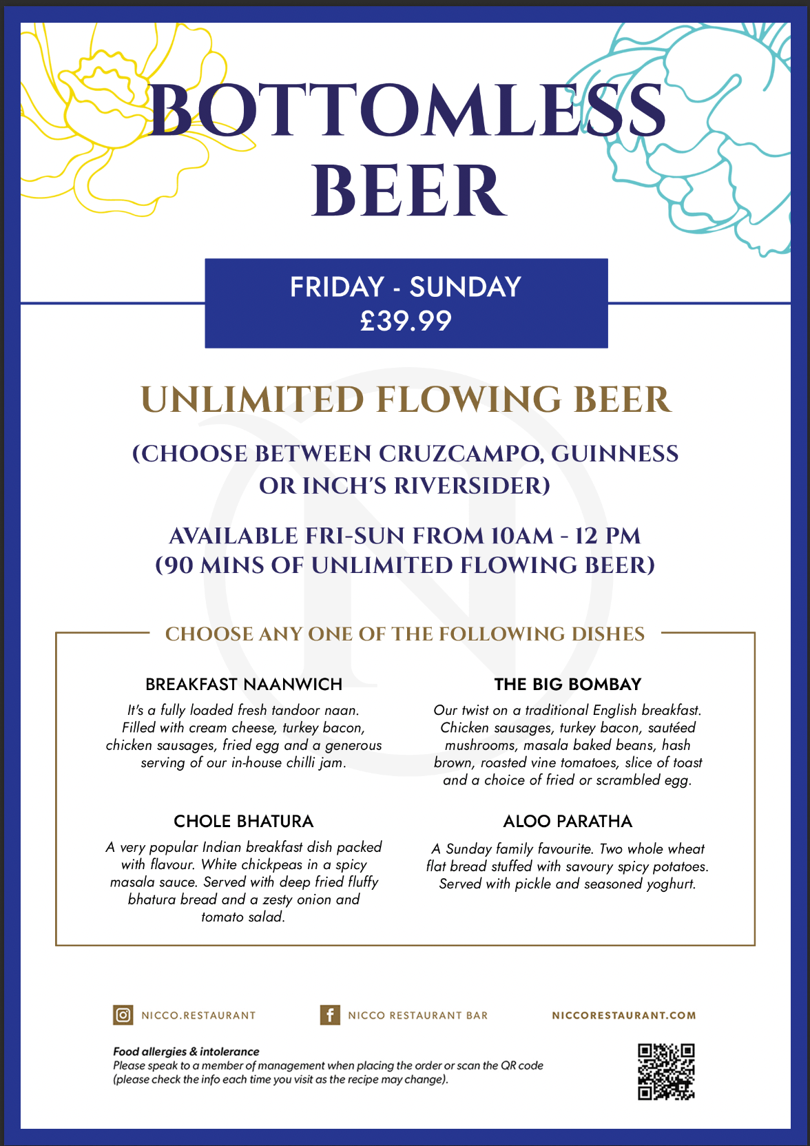 Breakfast A La Carte Kids Menu Desserts Drinks Bottomless Brunch Bottomless Soirée Bottomless Beer Set Menu